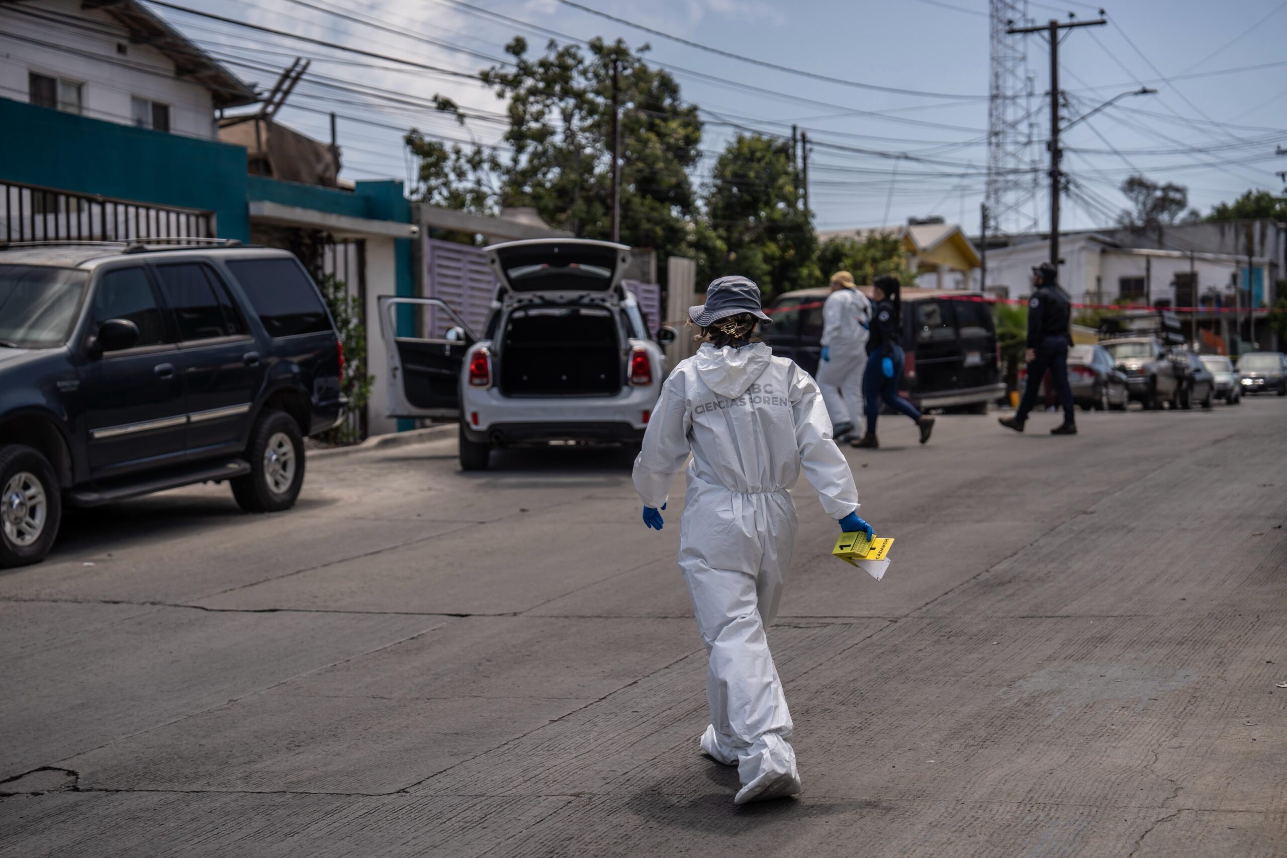 En la escena quedó un vehículo tipo Mini Cooper color blanco con las puertas abiertas, el cual presuntamente estaría relacionado con las víctimas.