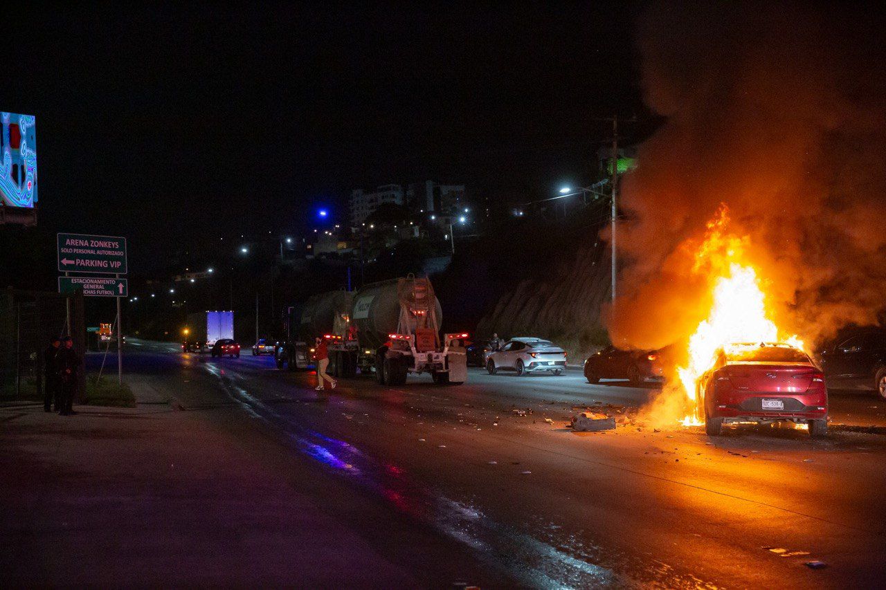 Un fuerte accidente se registró durante la madrugada de este viernes sobre el bulevar Rosas Magallón, a la altura del estadio de los Zonkeys, en dirección a Rosarito, el cual dejó como saldo a un joven lesionado y un vehículo completamente incendiado.