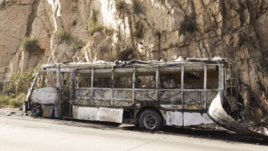 Camión de personal termina en cenizas tras incendiarse mientras circulaba en el 2000