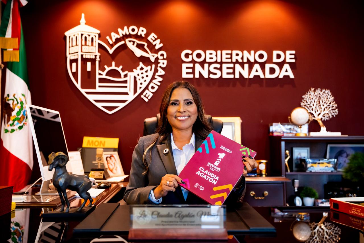 Con el impulso de proyectos prioritarios que cambiarán el destino de Ensenada, como el aeropuerto, el tercer carril en la entrada norte del municipio y el desarrollo de nuevas inversiones, como Ciudad Jatay, la alcaldesa Claudia Agatón Muñiz presentó, en sesión extraordinaria, su primer informe de gobierno ante el pleno del Cabildo.