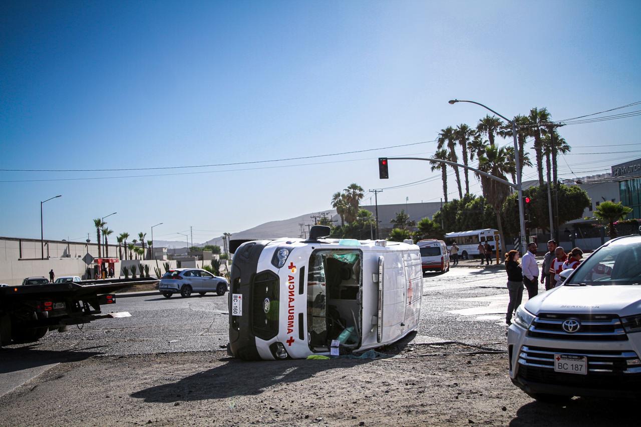 El accidente ocurrió sobre el bulevar Los Olivos, a la altura del Parque Industrial El Florido. Según versiones preliminares, el conductor del camión presuntamente se pasó un semáforo en rojo e impactó de lleno la unidad médica, provocando que volcara sobre su costado izquierdo.