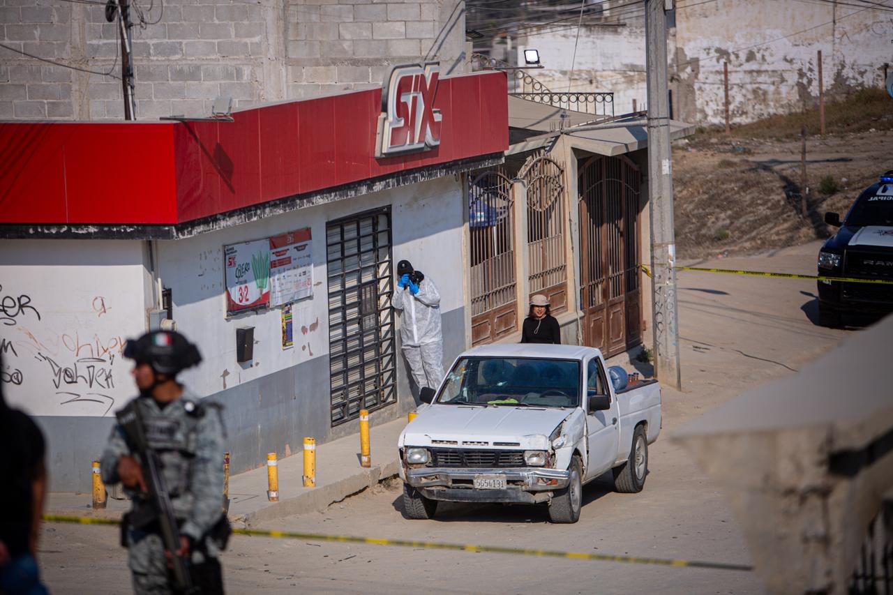 El ataque ocurrió sobre la calle Gorrión, esquina con Santa Emilia, frente a una tienda de abarrotes. La víctima fue atacada directamente dentro de una pick up blanca, cuyo parabrisas terminó con varios impactos de arma de fuego.