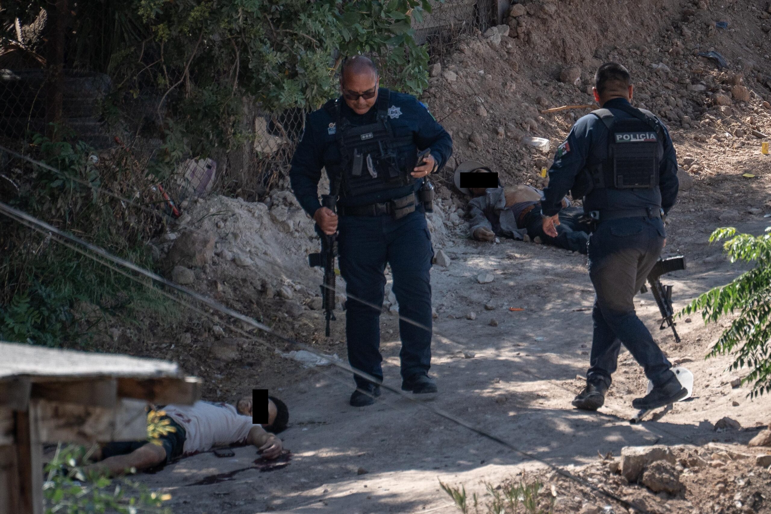 Los hechos ocurrieron sobre un camino vecinal en la delegación Cerro Colorado, donde fueron localizados los cuerpos de dos hombres en la vía pública.