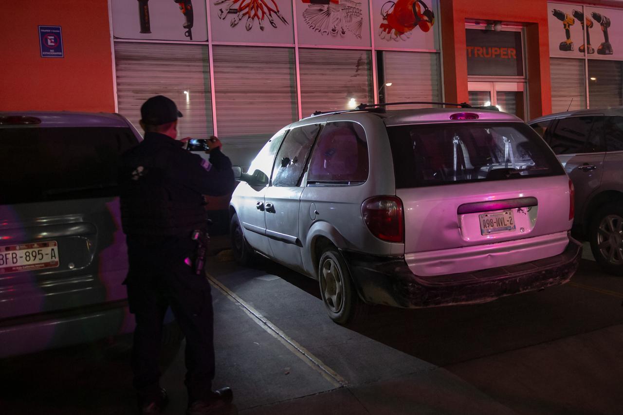 Tras la agresión, ambos se trasladaron en una camioneta a las instalaciones de la Cruz Roja, ubicadas sobre la calle Enrique Silvestre, en la colonia Los Santos, a bordo de una Dodge Caravan que presentaba daños por impactos de bala en el vidrio lateral.