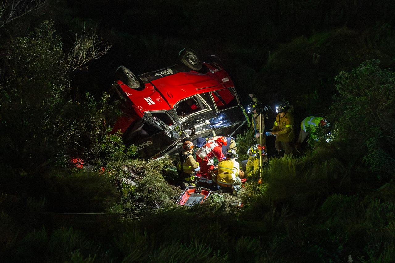 Bomberos rescatan a taxista tras volcarse en un barranco sobre el Libramiento Sur