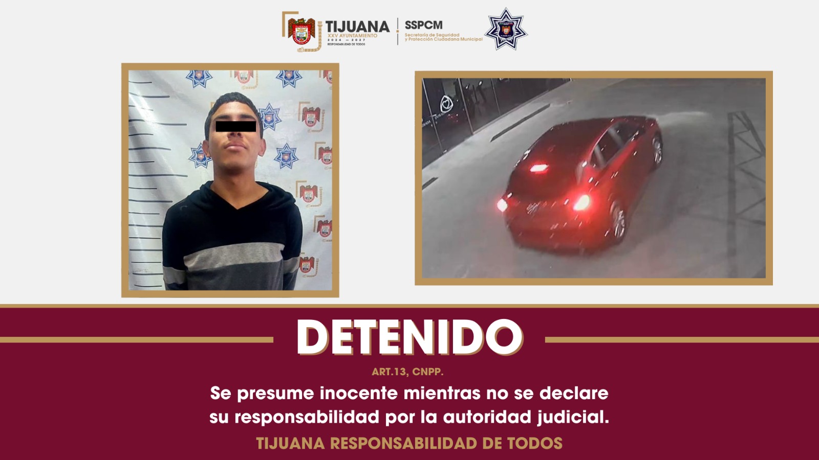 La intervención de los agentes de la Policía Municipal de Tijuana se produjo tras recibir un reporte de robo. Gracias a la información proporcionada por la parte afectada y tras realizar una búsqueda activa en la zona, los policías localizaron el vehículo, marca Mazda color rojo, reportado a la altura de la colonia Guaycura, así como a una persona que coincidía con las características descritas por los empleados de la agencia de autos.