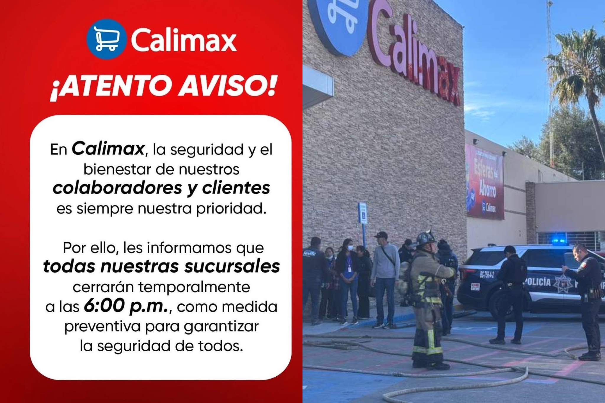 La cadena de supermercados Calimax informó que este domingo cerrará todas sus sucursales a partir de las 18:00 horas como medida preventiva, tras los hechos violentos registrados en distintos municipios de Baja California.