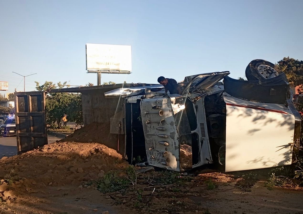El incidente ocurrió alrededor de las 5:00 p.m., cuando la unidad presentó una presunta falla mecánica. El conductor habría intentado subir el camión al camellón central para detener su marcha, pero terminó volcado.
