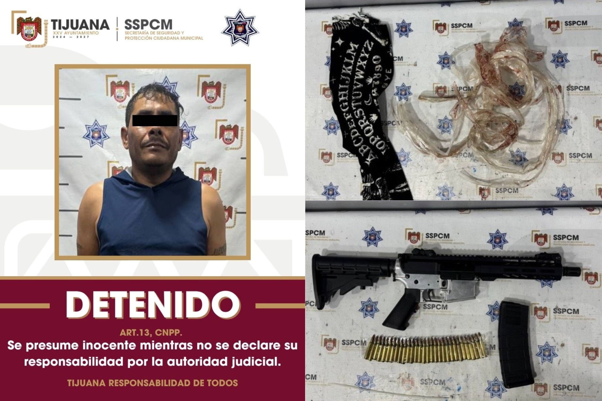 Durante su detención se le aseguró un fusil calibre .223 con 30 cartuchos útiles. La Fiscalía General del Estado ya investiga el caso.