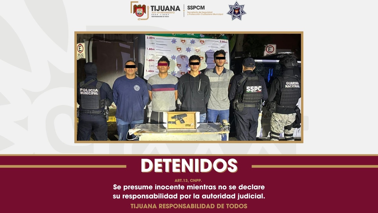 En una exitosa coordinación entre la Secretaría de Seguridad y Protección Ciudadana (SSPCM), la Secretaría de Seguridad y Protección Ciudadana Federal (SSPCF) y la Guardia Nacional, se logró la detención de cuatro individuos por la portación ilegal de arma de fuego, de los cuales se presume que, al menos, uno de ellos está relacionado con el homicidio del propietario de Saldos Max.