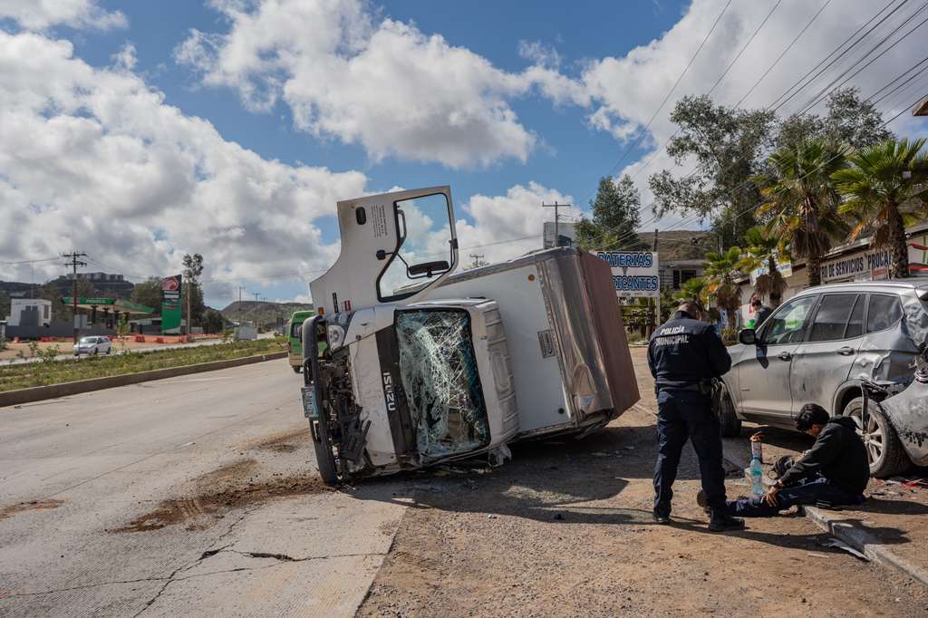 Un choque múltiple se registró la mañana de este martes 17 de febrero sobre el bulevar 2000, a la altura de Rancho Casian, en dirección a Playas de Rosarito, donde se vieron involucrados tres vehículos y uno de ellos terminó volcado.