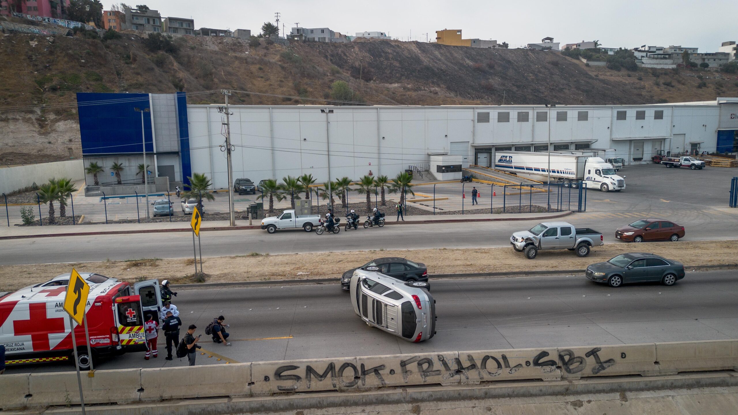 Choque termina en volcadura sobre la Vía Rápida Alamar