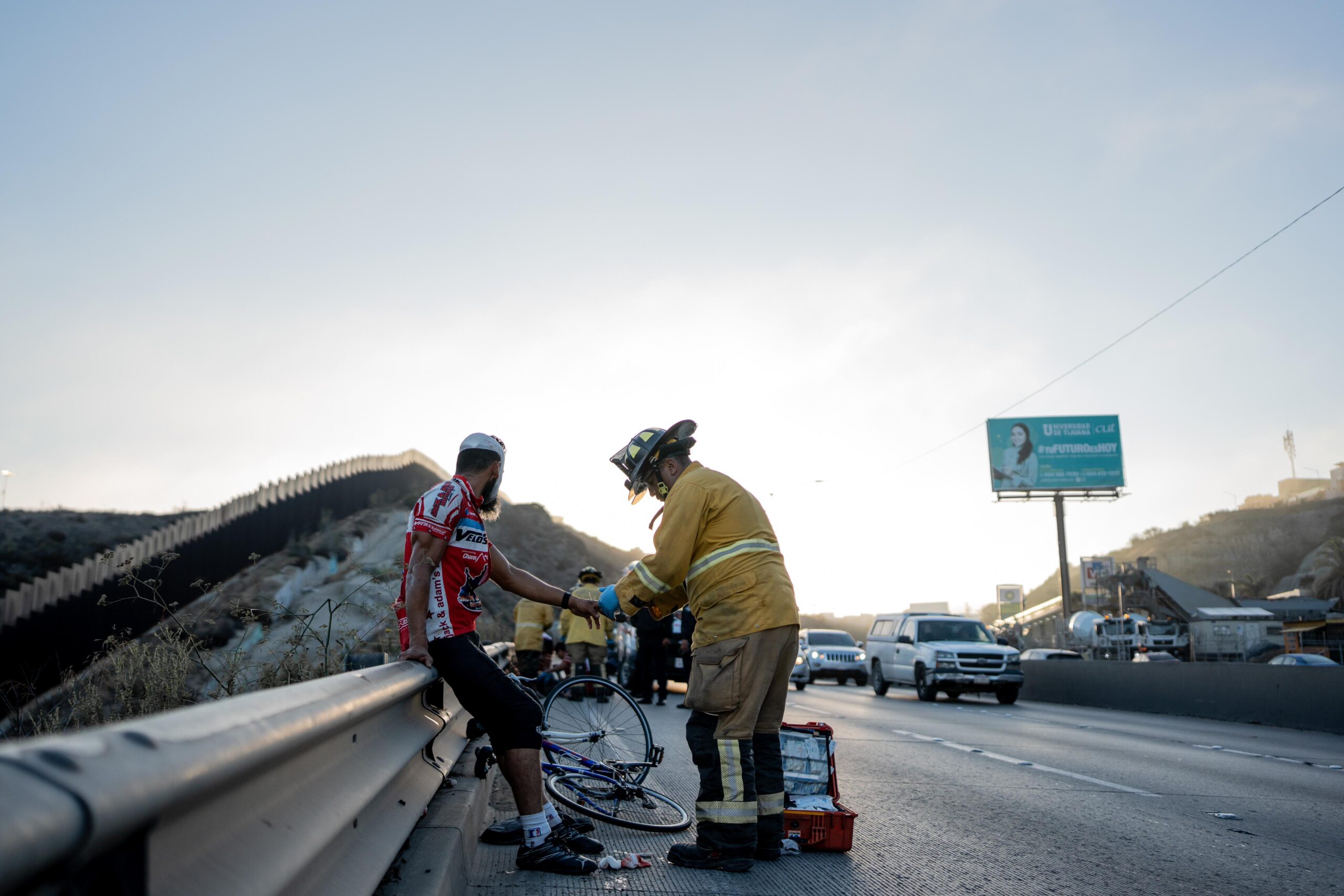 Mientras tanto, el ciclista presentó una herida en la cabeza, pero se negó a ser trasladado a un centro médico y permaneció en el sitio a la espera de sus familiares.