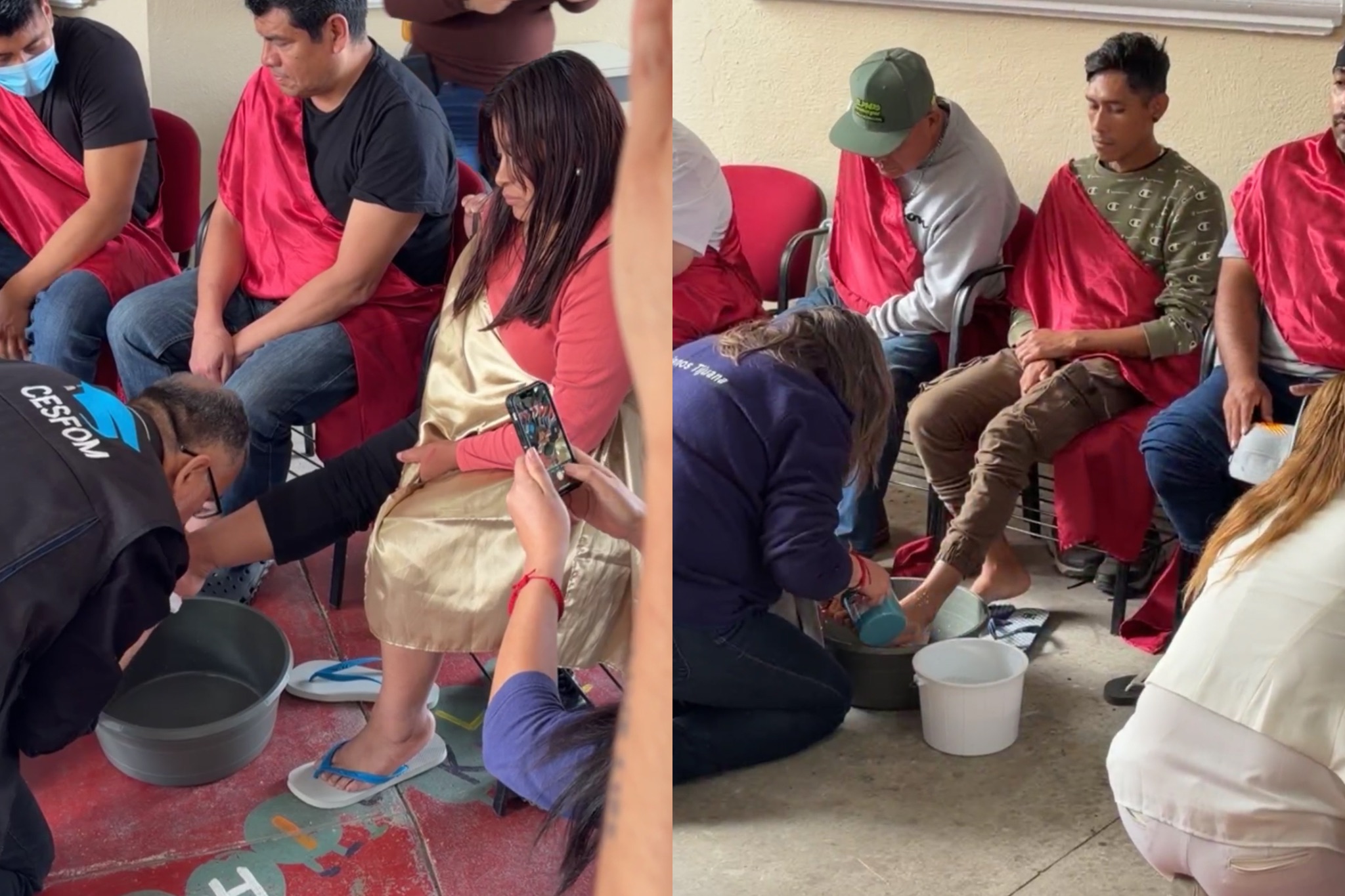 Como lo hizo Jesús, realizan lavado de pies a migrantes en la Casa del Migrante de Tijuana