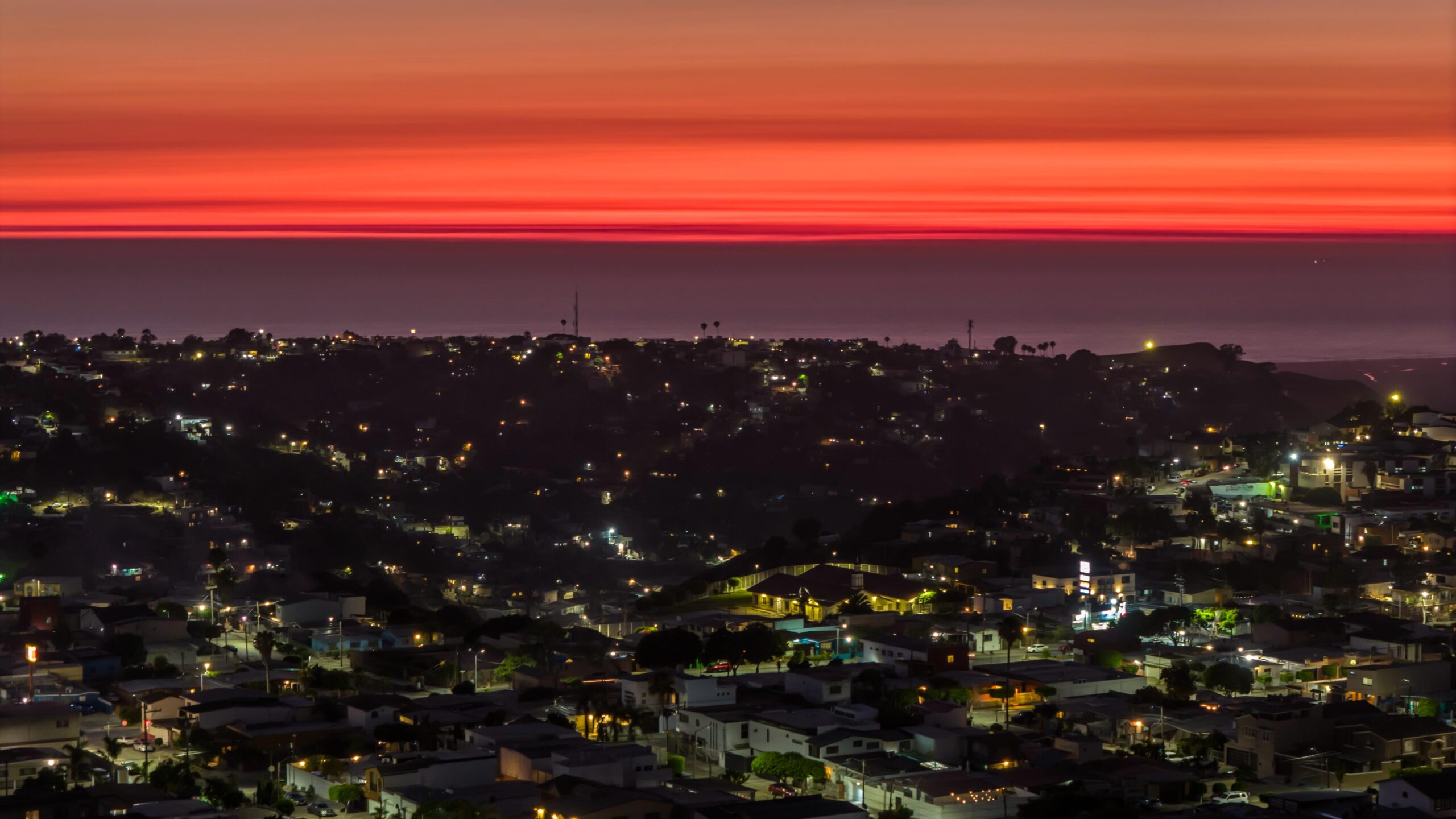 Las imágenes fueron captadas desde la delegación Playas de Tijuana, una de las zonas más privilegiadas para apreciar los atardeceres del Pacífico.
