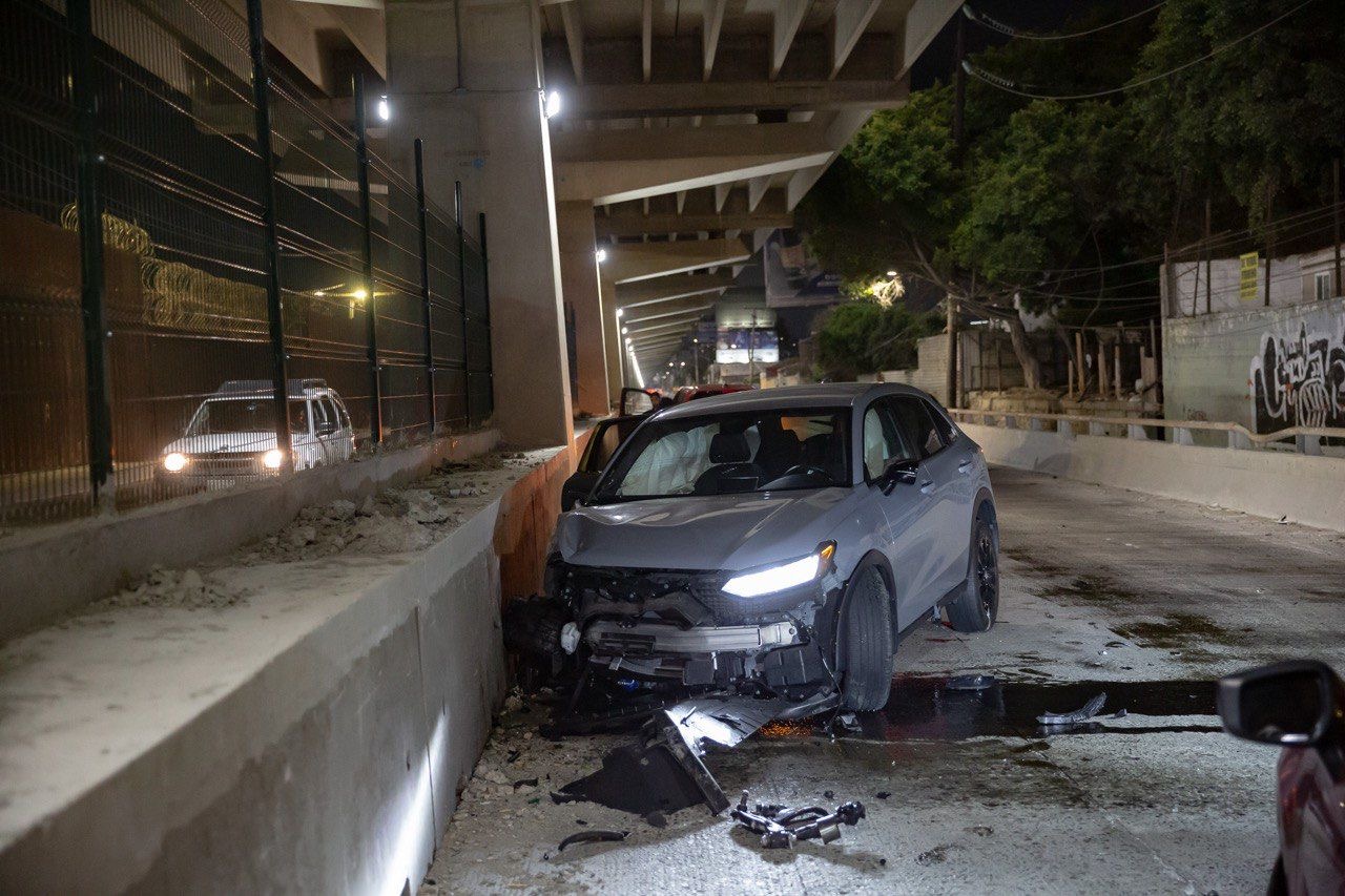 De acuerdo con los primeros reportes, una camioneta Honda HR-V de reciente modelo terminó impactada contra la división de concreto que separa la incorporación hacia la Zona Norte, quedando en sentido contrario sobre uno de los carriles.