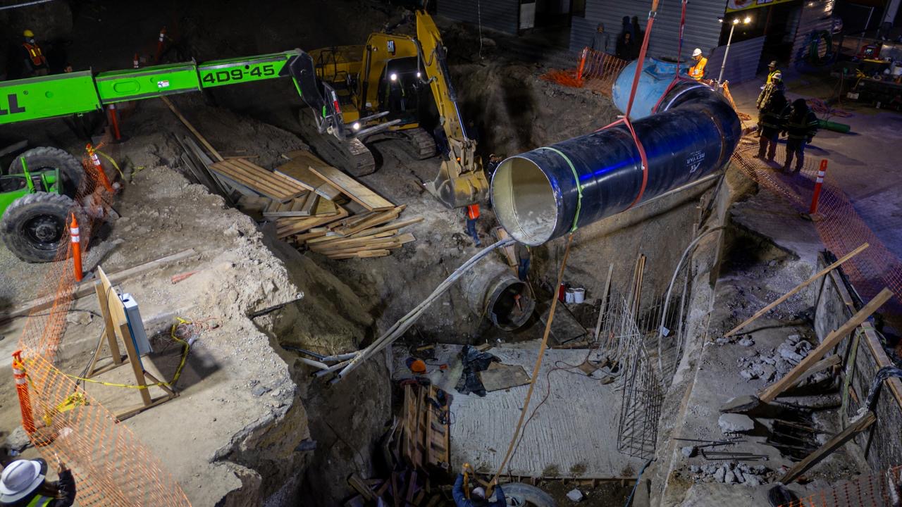 Durante este viernes, en Lomas de la Presa, se observó a cuadrillas técnicas y operativas realizando las labores de interconexión del nuevo tramo del acueducto, con el objetivo de concluir las maniobras principales durante el transcurso de la noche y permitir el inicio del restablecimiento paulatino del servicio.