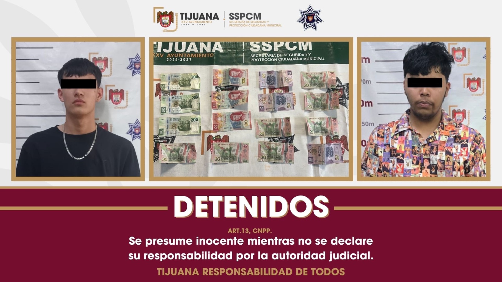 La detención de estos presuntos responsables del delito de robo se dio gracias a la rápida denuncia por pate de la víctima, así como al trabajo llevado a cabo por parte de la Policía Municipal en coordinación con el personal de monitoreo para ubicar las rutas que intentaron utilizar los detenidos para evadir la aplicación de la justicia.