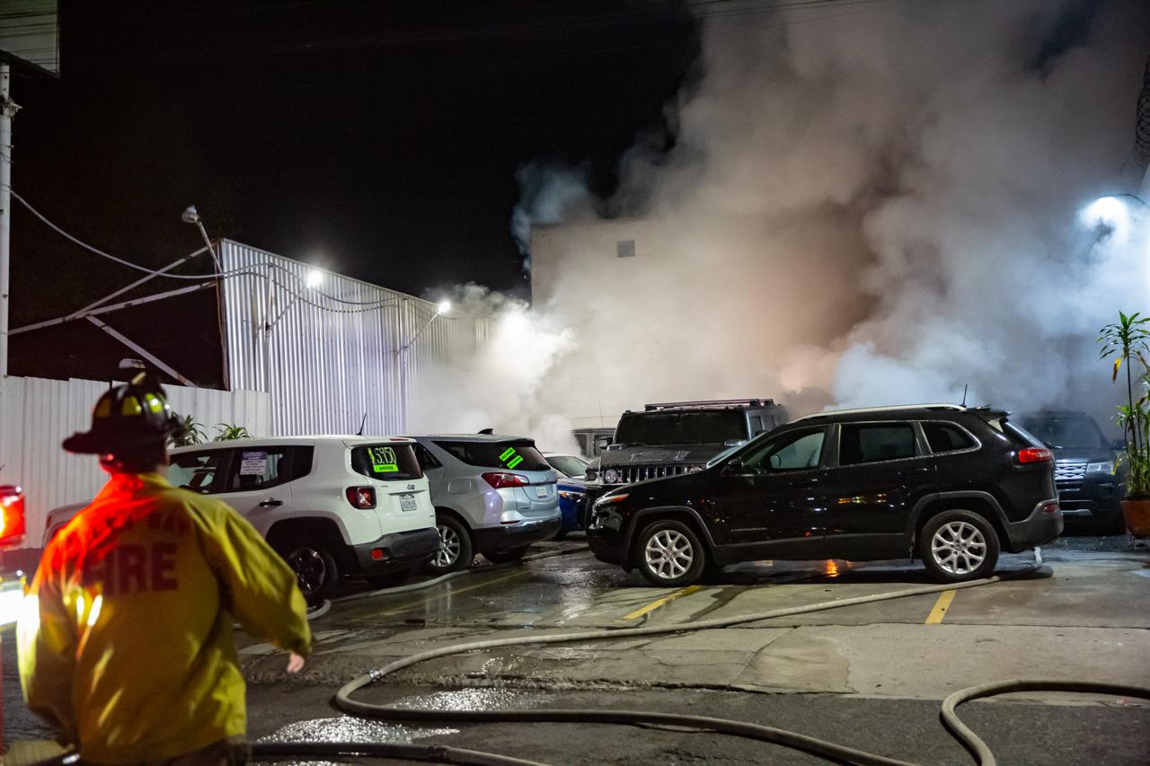 Al arribar, la primera máquina extintora solicitó refuerzos al confirmar un incendio de gran magnitud dentro del lote de compra y venta Cami Corporativo Abasolo, donde las llamas ya alcanzaban varias unidades.