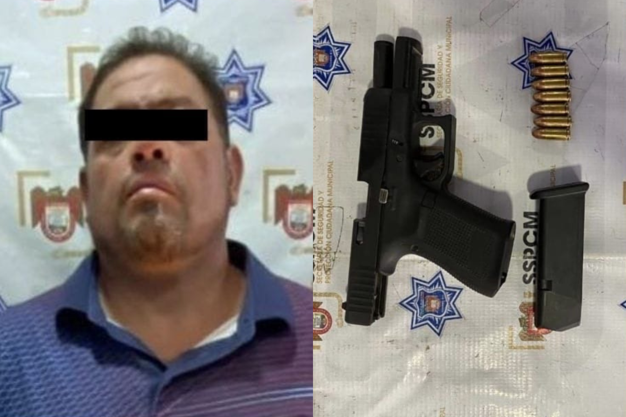 El conductor, identificado como Juan Carlos “N”, de 45 años, fue asegurado de inmediato. Durante la revisión, los policías localizaron fajada a su cintura un arma de fuego tipo pistola calibre 9 milímetros con un cargador abastecido con siete cartuchos útiles.