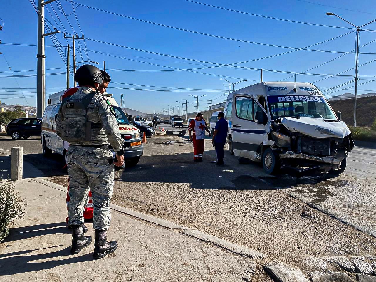El incidente ocurrió cerca del IMOS. Los vehículos involucrados fueron una unidad de transporte público azul con blanco, de la ruta Delicias–Otay, y un automóvil Toyota Camry blanco.