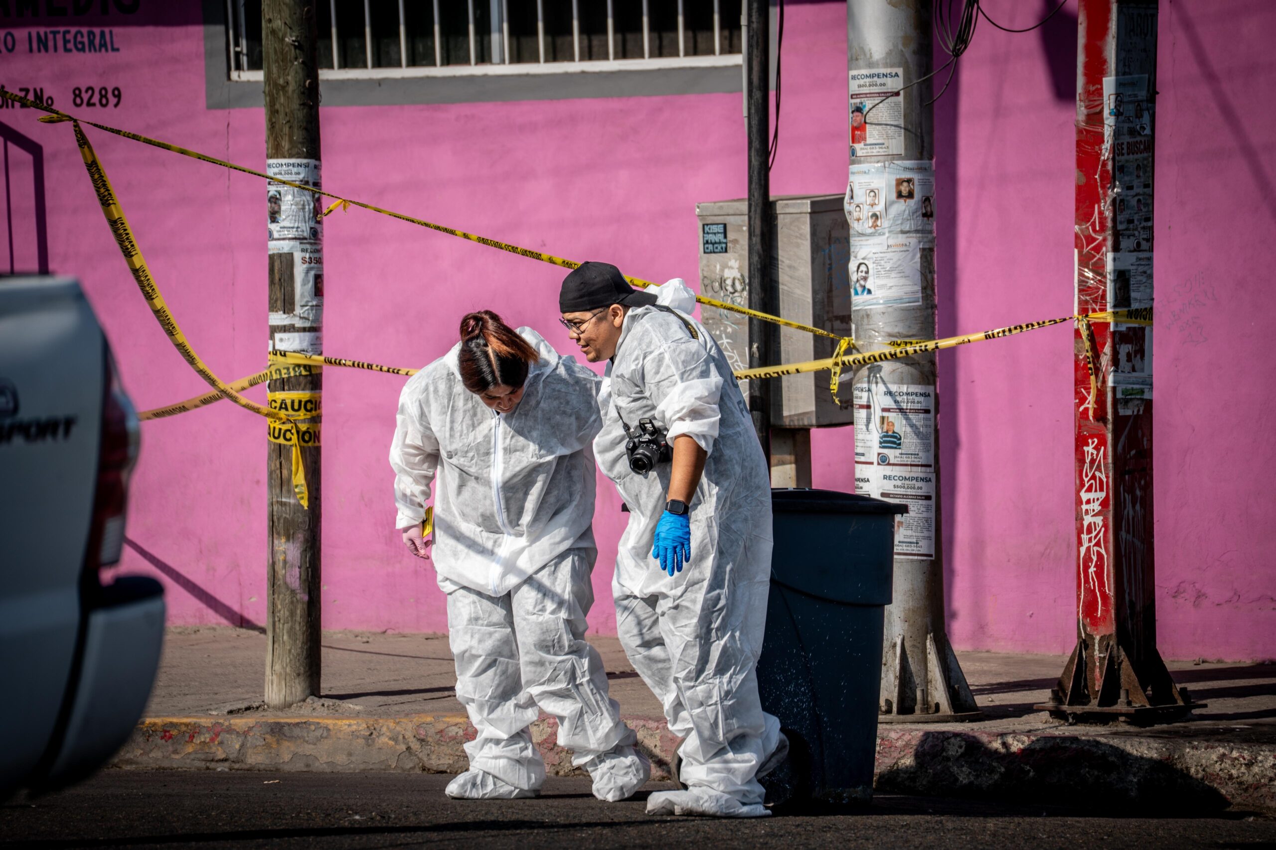El contenedor, de color gris con tapa negra, se encontraba en la vía pública; en su interior fue localizada la víctima, quien vestía una playera negra y tenía el cabello largo.