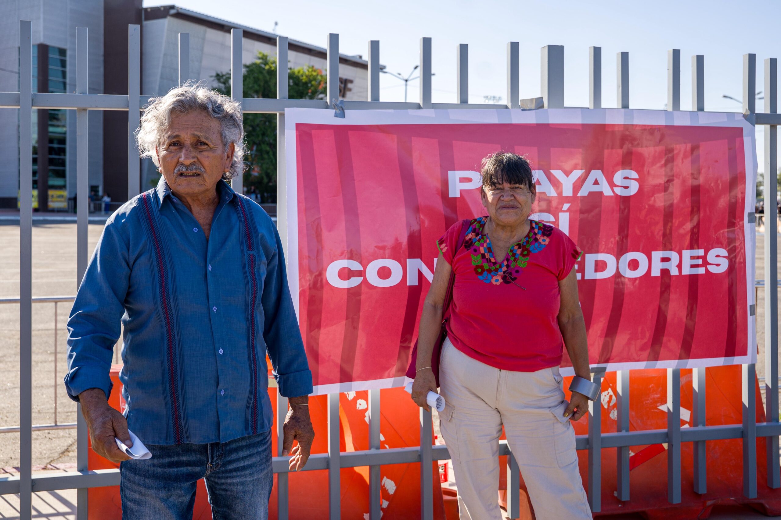 A las afueras del auditorio del Estado en Mexicali, lugar donde se espera la llegada de la presidenta Claudia Sheinbaum Pardo, un contingente de personas se ha congregado para manifestarse pacíficamente en demanda de justicia ambiental y transparencia.
