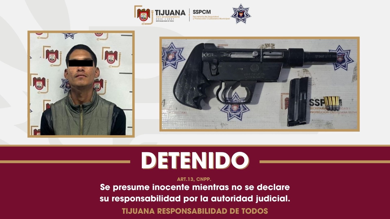 Como resultado de los recorridos preventivos de vigilancia en zonas prioritarias, elementos de la Policía Municipal lograron la detención de un hombre por portación de arma de fuego en la colonia Buenos Aires Norte.