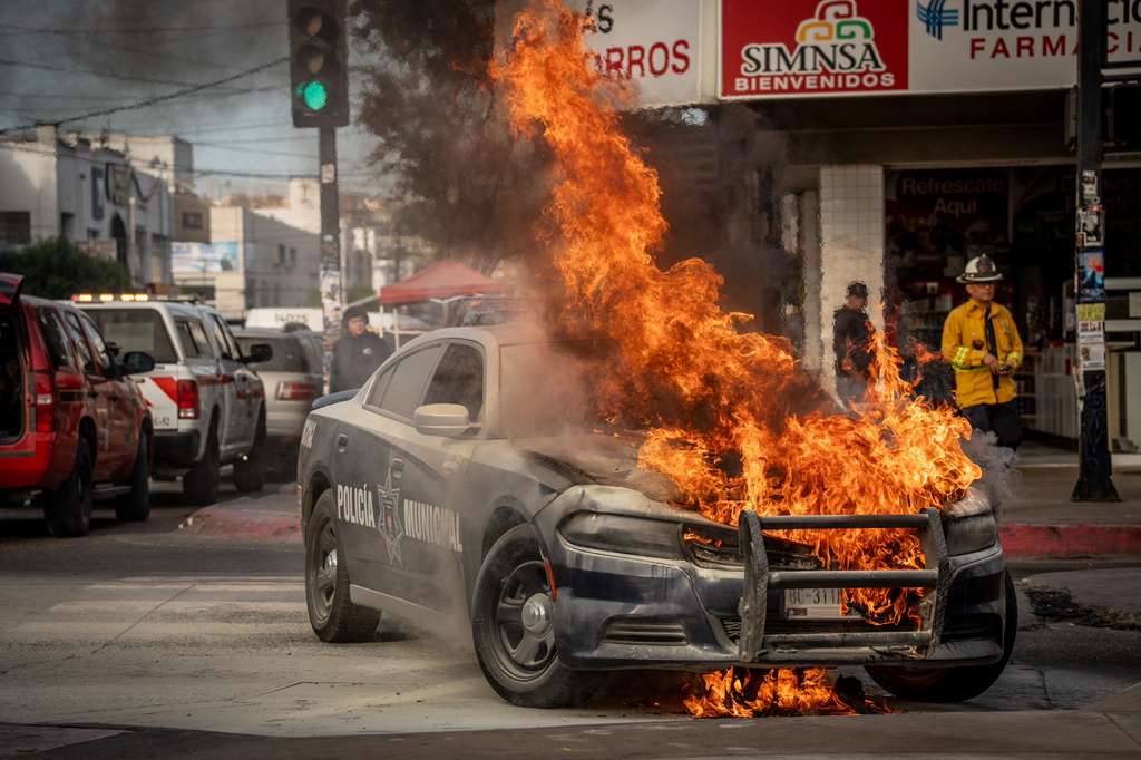 Una patrulla de la Policía Municipal se incendió la mañana de este jueves mientras circulaba sobre la avenida Revolución, entre la calle Segunda y Tercera, en la Zona Centro de Tijuana.