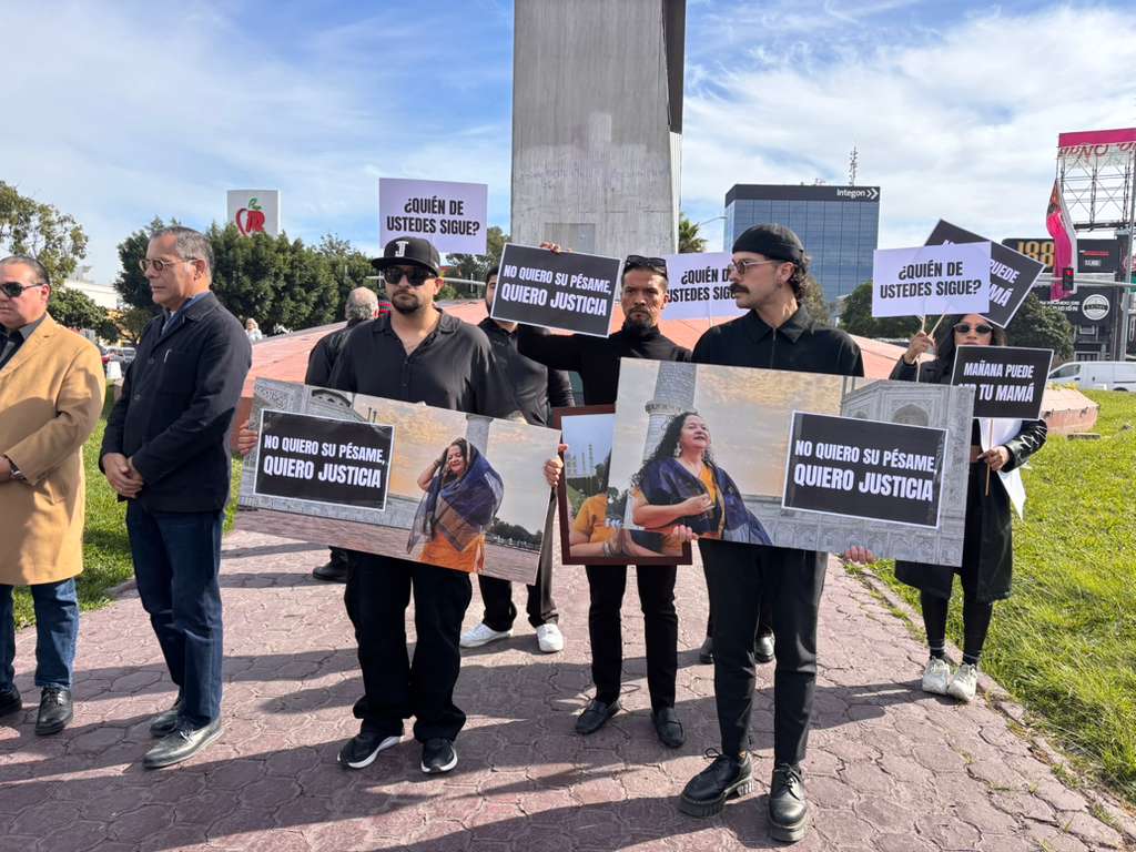 Familiares de Emilia Ortega y abogados se manifiestan en el Monumento a México, conocido como las Tijeras; exigen justicia a las autoridades. Marcharán hacia la Fiscalía General del Estado.