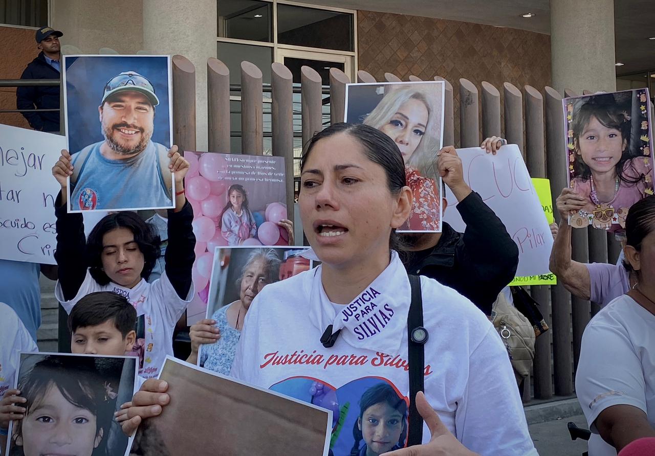 Familiares y amigos de Silvia Yáñez y Silvia Aurora López, abuela y nieta que perdieron la vida tras ser atropelladas, se manifestaron este viernes 24 de octubre frente a los juzgados de La Mesa para exigir justicia y evitar que el caso quede impune.