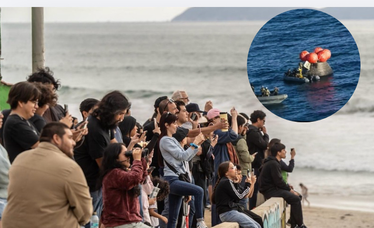 El punto de reunión se convirtió en un mirador improvisado para quienes buscaban observar el retorno de la cápsula, que finalmente aterrizó en aguas del Pacífico, en una zona previamente delimitada frente al estado de California, donde equipos de recuperación ya aguardaban su llegada. Sin embargo, las condiciones climáticas y la visibilidad no fueron favorables, lo que dificultó apreciar el momento desde territorio tijuanense.