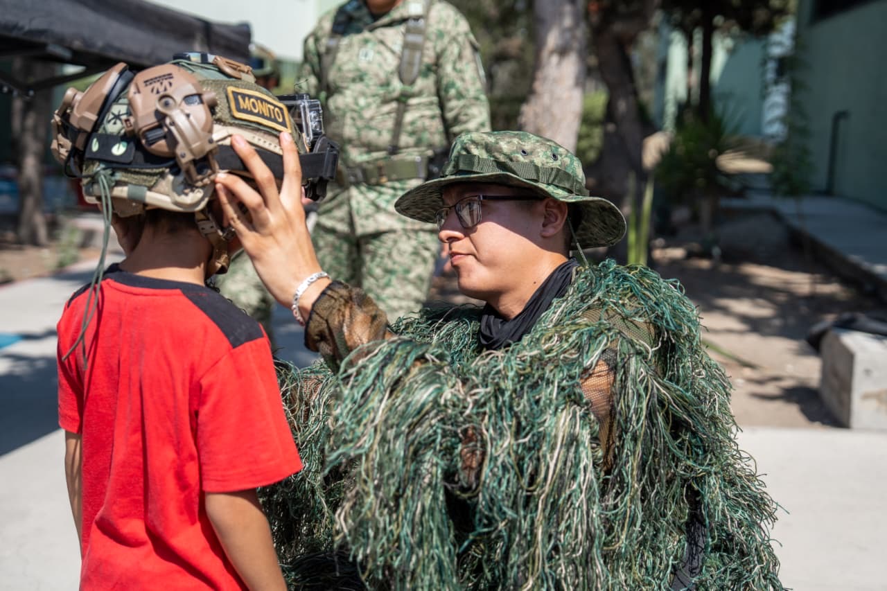 Durante la visita, niños y adultos pudieron conocer de cerca el estilo de vida de los soldados, así como su equipo táctico, vehículos blindados, banda de guerra y una exhibición canina.