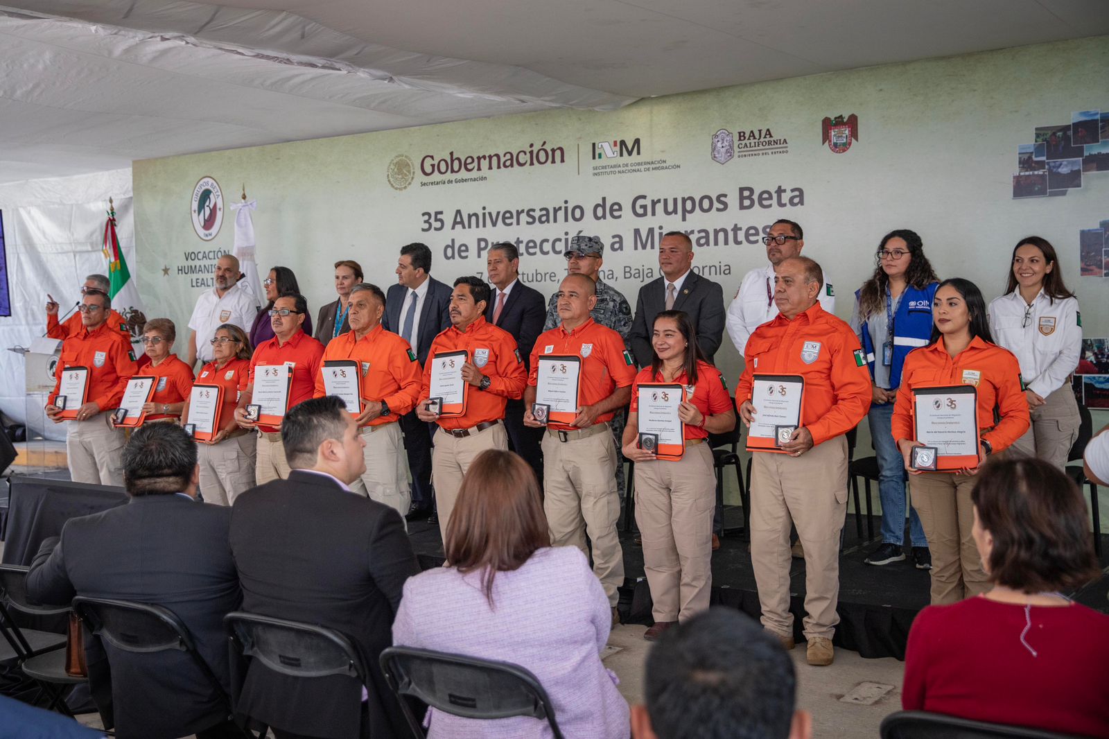 Durante la ceremonia conmemorativa del 35 aniversario, realizada este martes en la Garita El Chaparral, en los patios fiscales de la aduana, Gilberto Higuera Bernal, director general de Coordinación de Oficinas de Representación del INM, recordó el origen de esta iniciativa humanitaria: “En esta ciudad inició el Grupo Beta; pocos años después se crearon grupos similares hasta llegar a este conjunto de equipos distribuidos en diferentes lugares del país”, expresó.