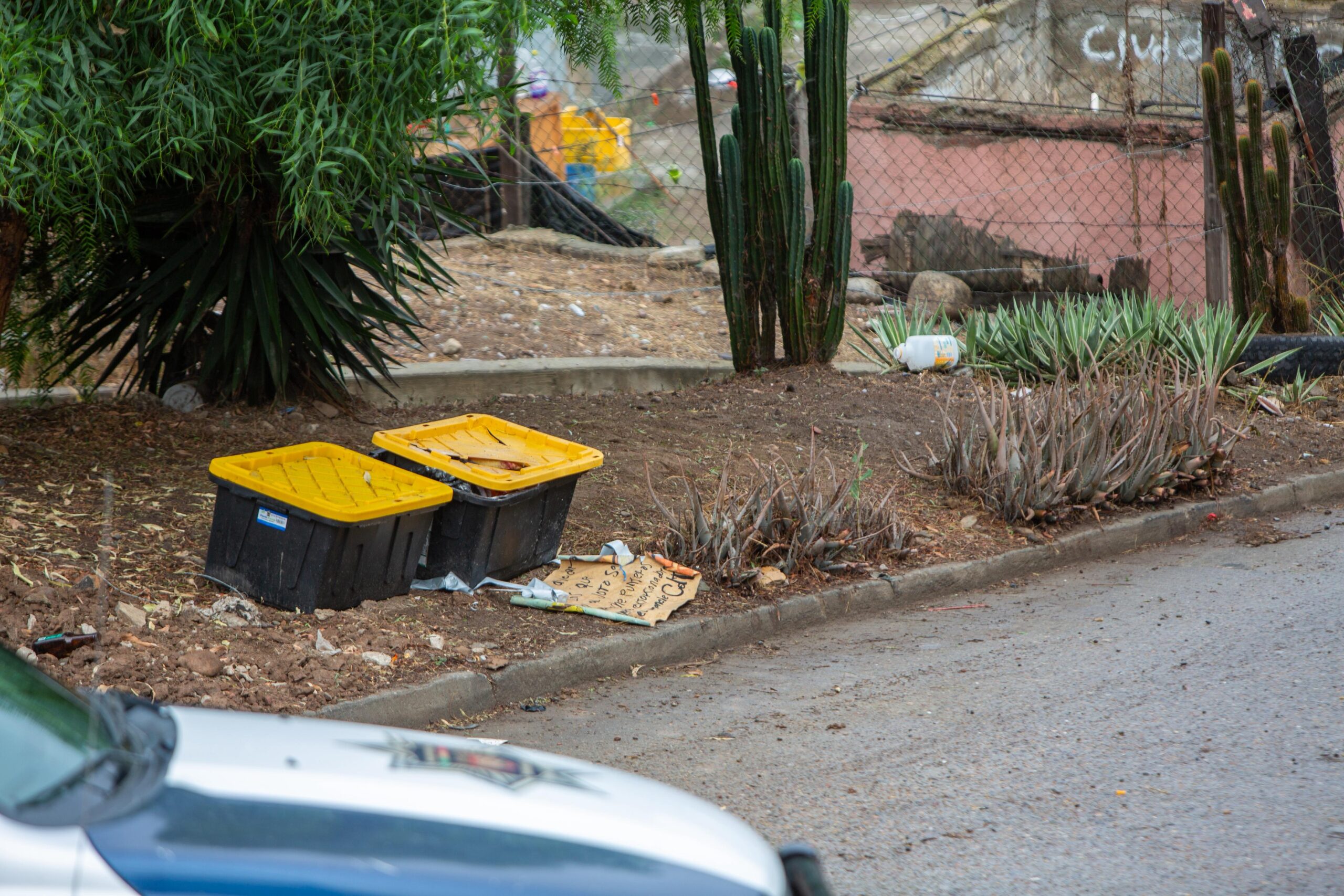 Al arribar, policías municipales inspeccionaron los contenedores y confirmaron que en su interior había restos humanos de una mujer, además de una cartulina con un mensaje escrito.
