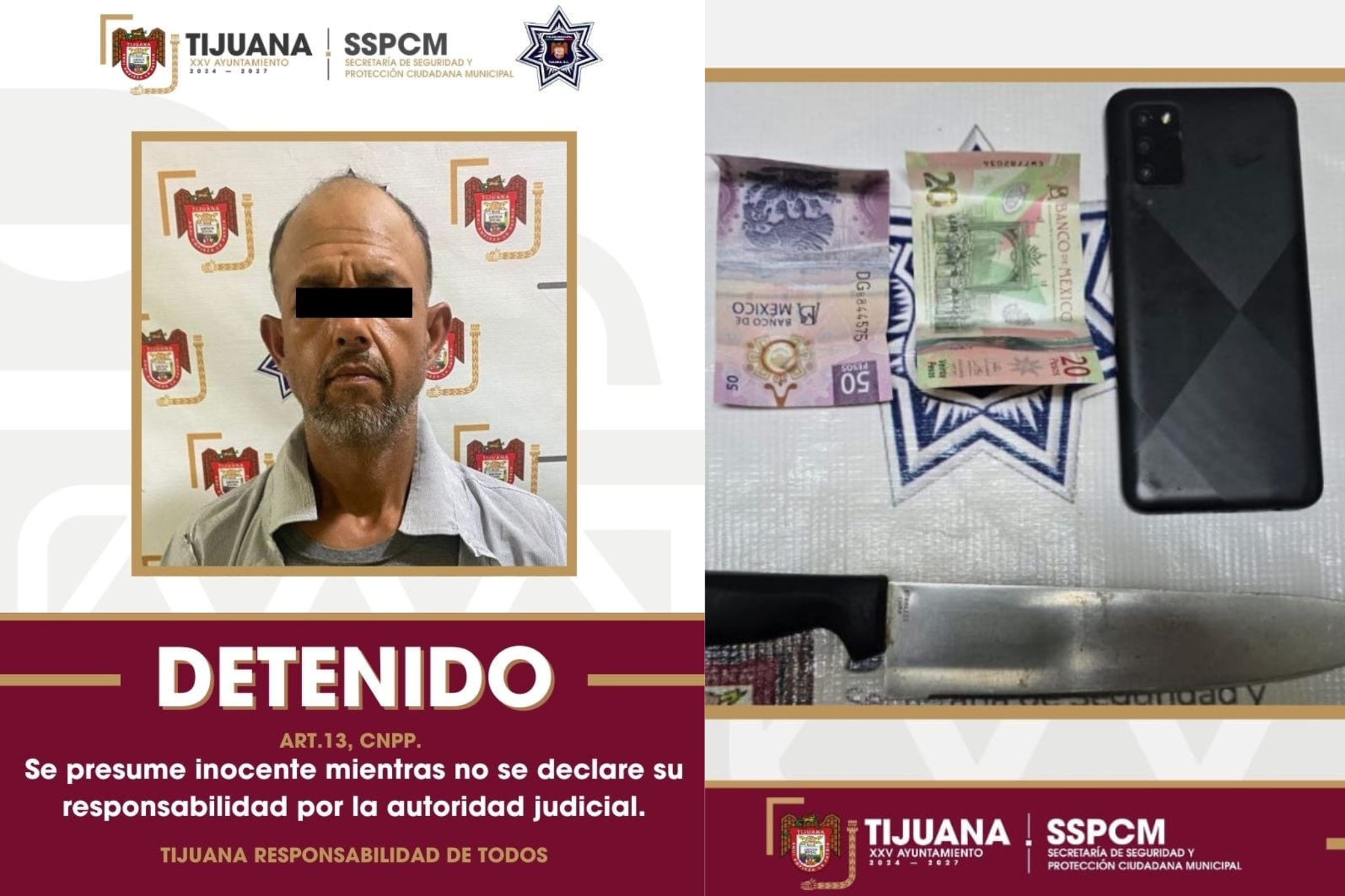 La Policía Municipal de Tijuana detuvo a un hombre señalado por robo con violencia en la colonia Campestre Murua, tras un operativo de búsqueda inmediata, informó la SSPCM.