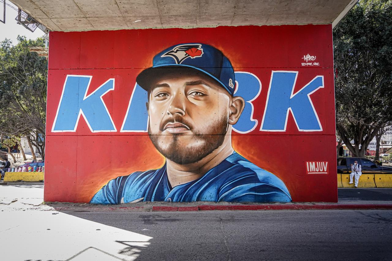 El pelotero tijuanense Alejandro Kirk, receptor de los Toronto Blue Jays en las Grandes Ligas, fue homenajeado con un mural de más de cinco metros de altura ubicado sobre la garita de San Ysidro, uno de los puntos de mayor tránsito fronterizo en la ciudad.