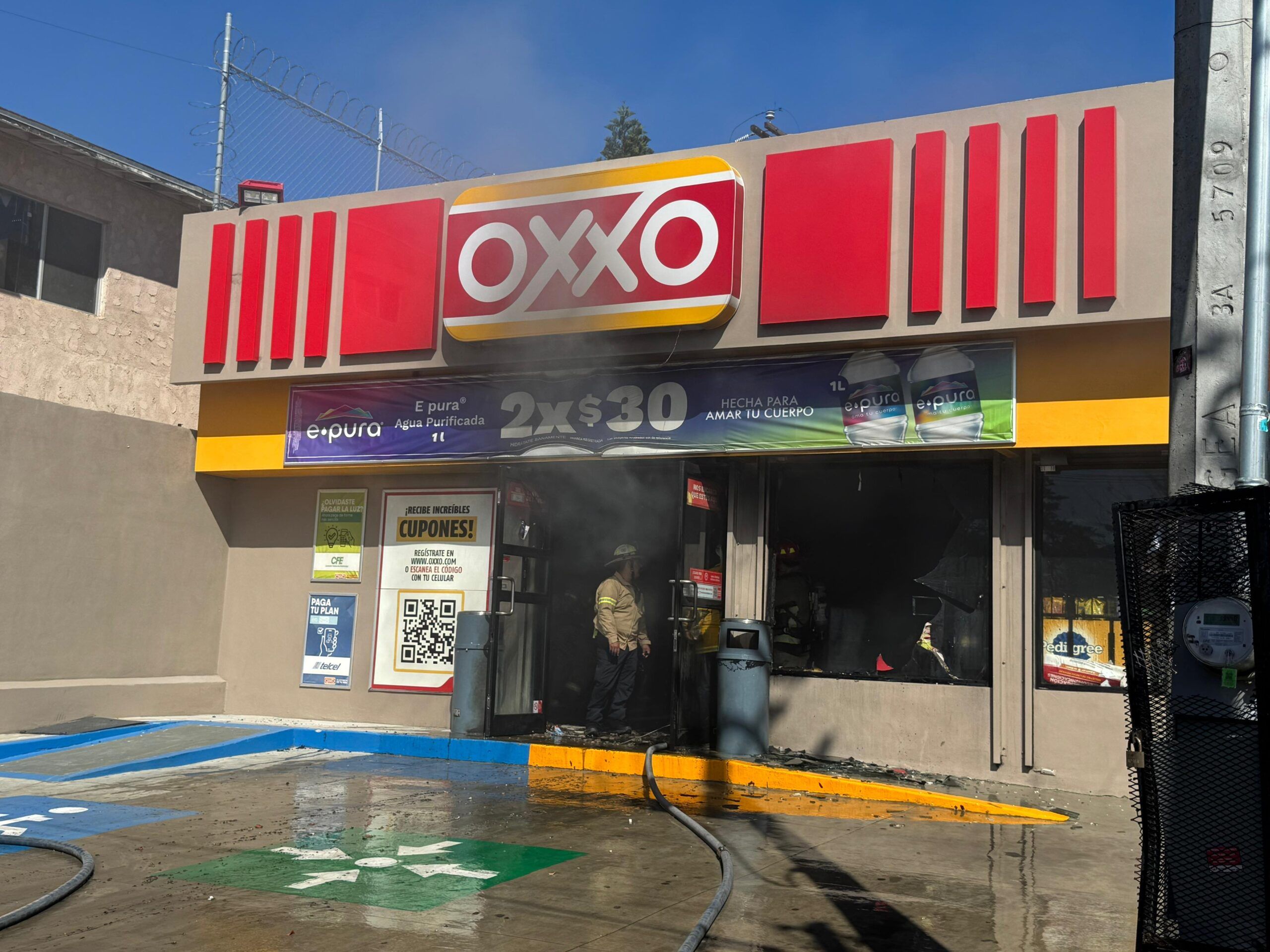 Una tienda de conveniencia Oxxo ubicada sobre la calle prolongación Santo degollado, cerca del Libramiento Rosas Magallón en la colonia Oaxaca fue incendiada.