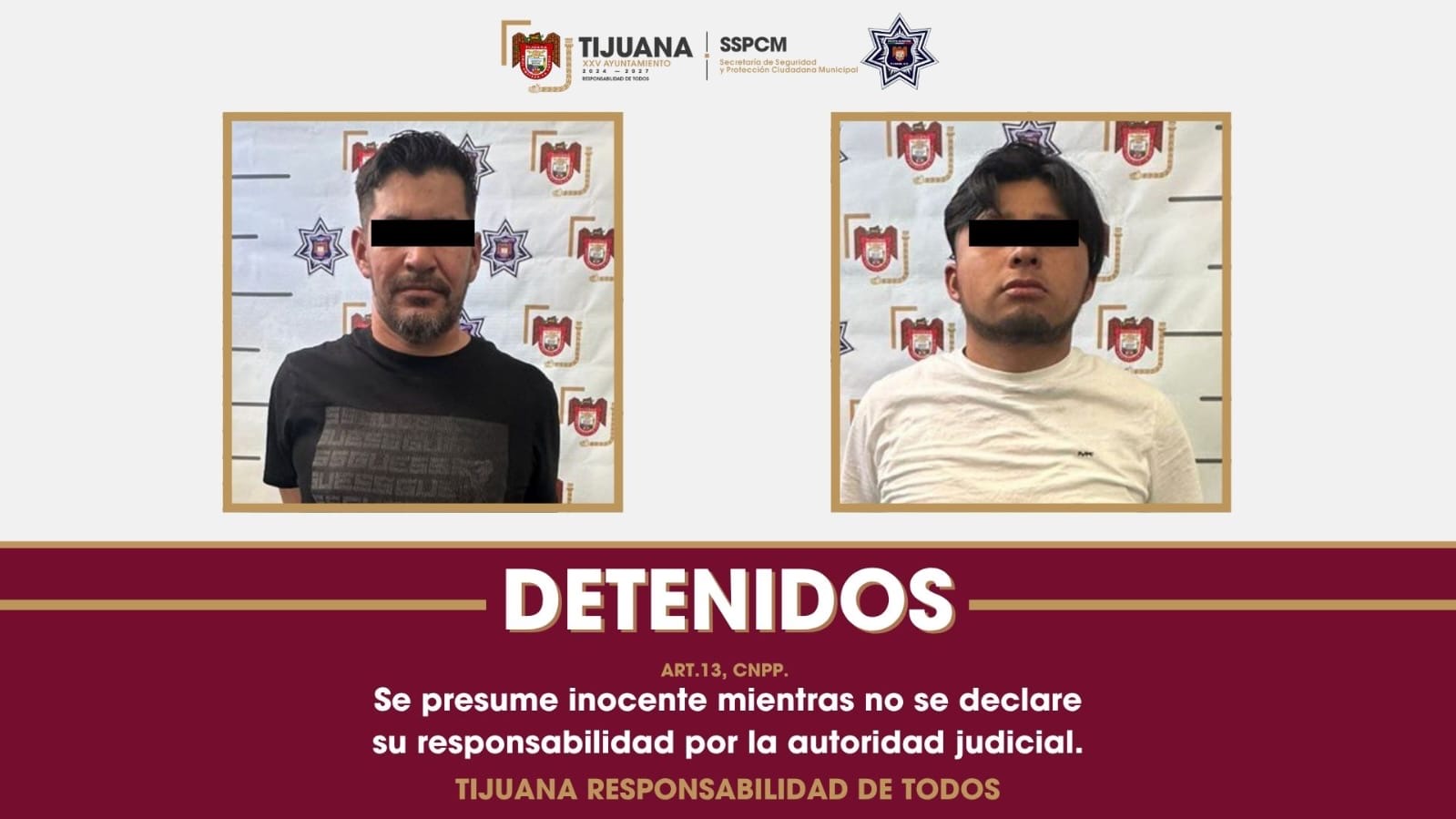 Dos hombres fueron detenidos por elementos de la Policía Municipal de Tijuana tras ser sorprendidos en el patio trasero de una vivienda en la colonia Lázaro Cárdenas, uno de ellos en posesión de un arma de fuego.