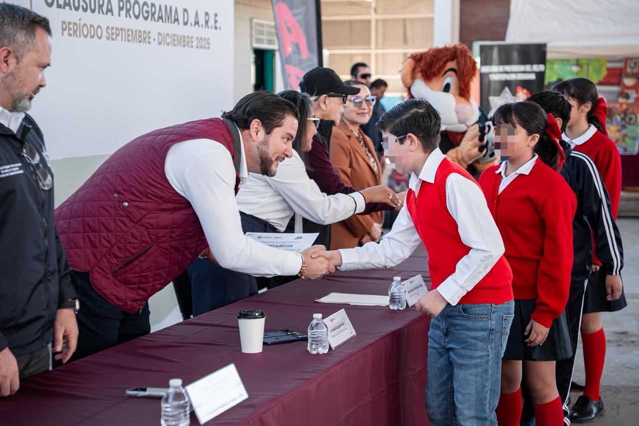 El alcalde de Tijuana, Ismael Burgueño Ruiz, encabezó la clausura del programa D.A.R.E. correspondiente al periodo septiembre–diciembre 2025, realizada en la Primaria Don Andrés Quintana Roo.