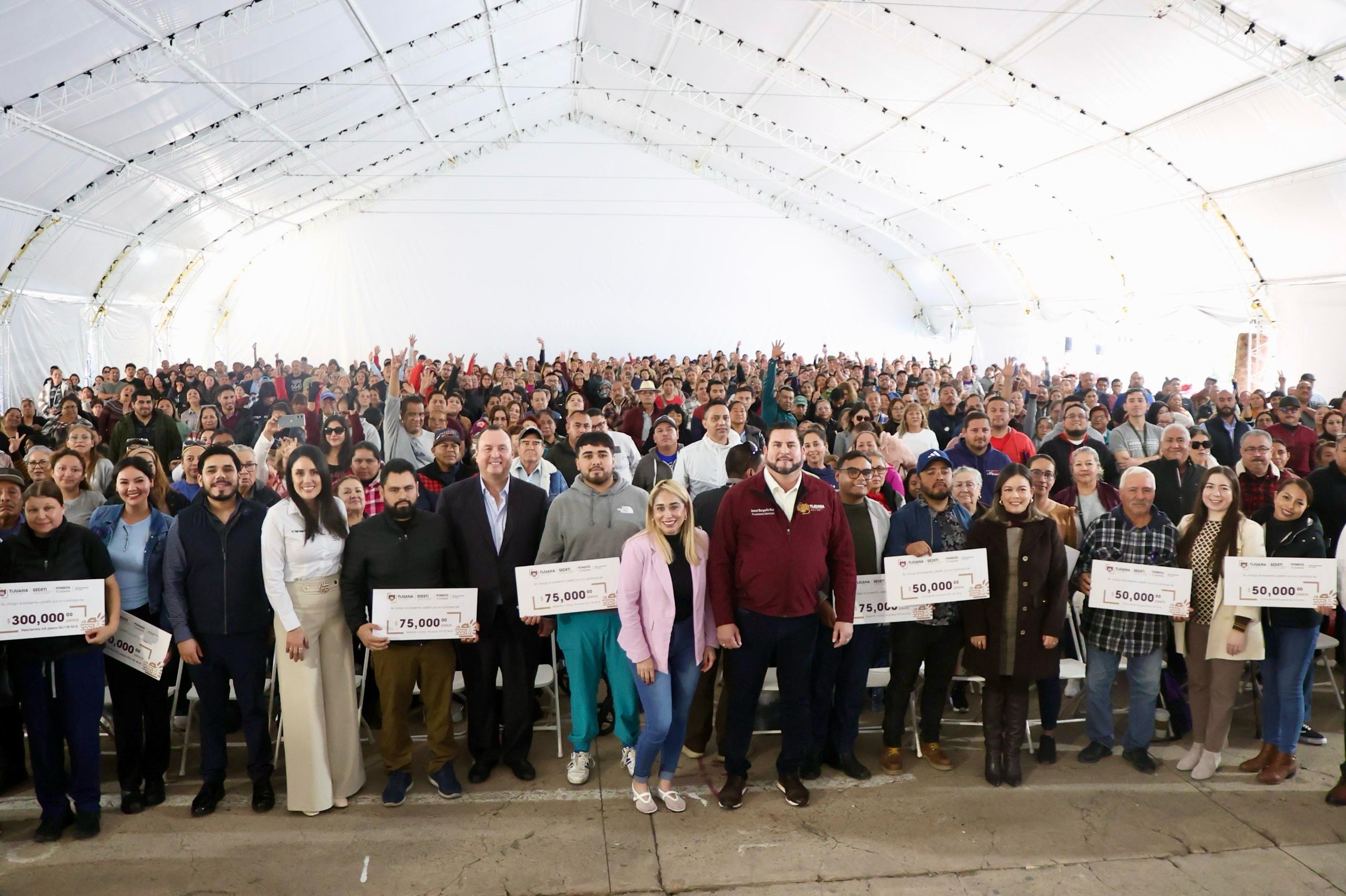 El alcalde Ismael Burgueño encabezó la cuarta entrega de créditos de “Fondos Tijuana”, beneficiando a 916 emprendedores con casi 47 millones de pesos para impulsar autoempleo, nuevos proyectos y pequeñas empresas.