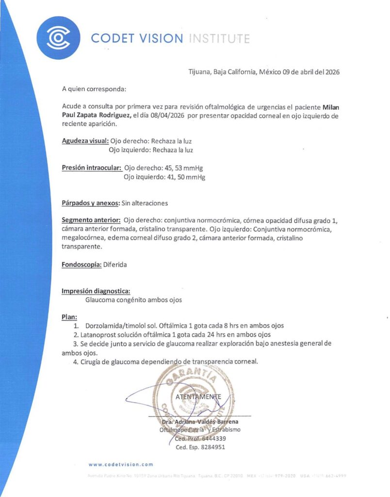 De acuerdo con la información compartida por su familia, el menor será intervenido quirúrgicamente entre el 21 y el 23 de abril, con el objetivo de mejorar su calidad de vida y preservar su visión.