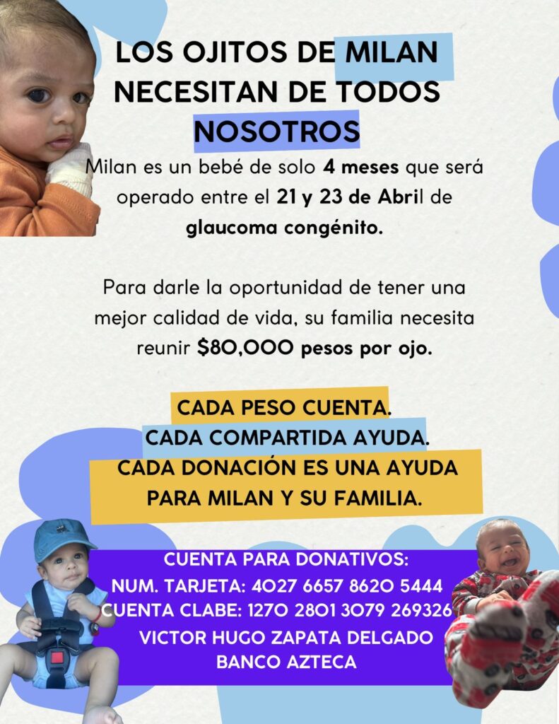 Milán, un bebé de apenas cuatro meses de edad, necesita apoyo de la comunidad para poder ser operado de glaucoma congénito, una condición que afecta su vista y que requiere atención médica urgente.