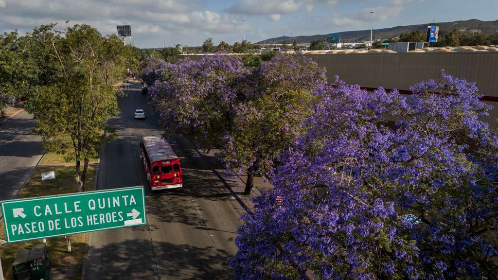 Las jacarandas, que año con año anuncian el cambio de estación, no solo embellecen el entorno, sino que también transforman banquetas y vialidades al cubrirlas con sus pétalos, generando postales que contrastan con el entorno urbano.