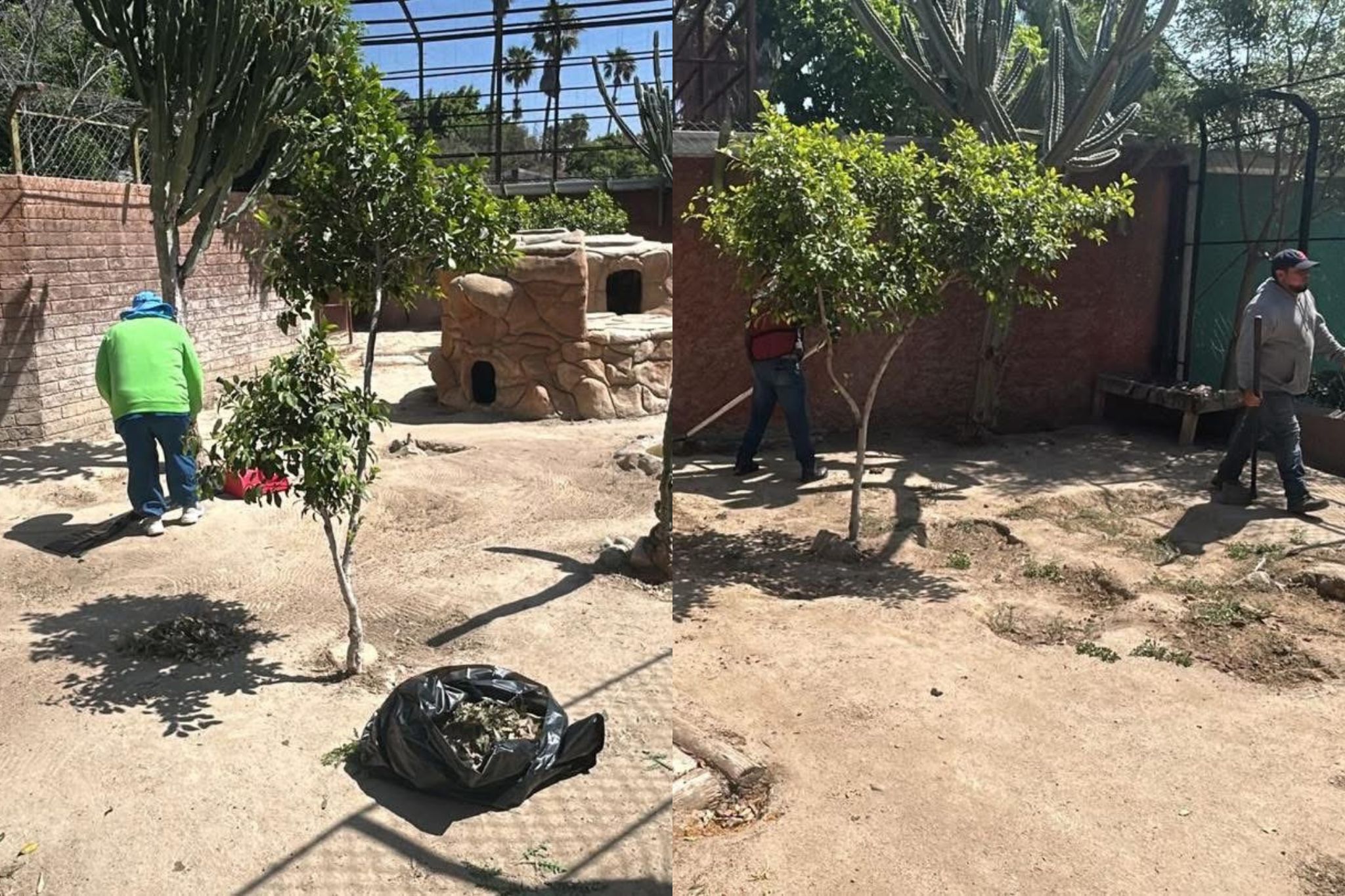 Personal del Sistema Municipal de Parques Temáticos de Tijuana (SIMPATT) llevó a cabo labores de limpieza y deshierbe en el área destinada a coyotes dentro del Parque Morelos.