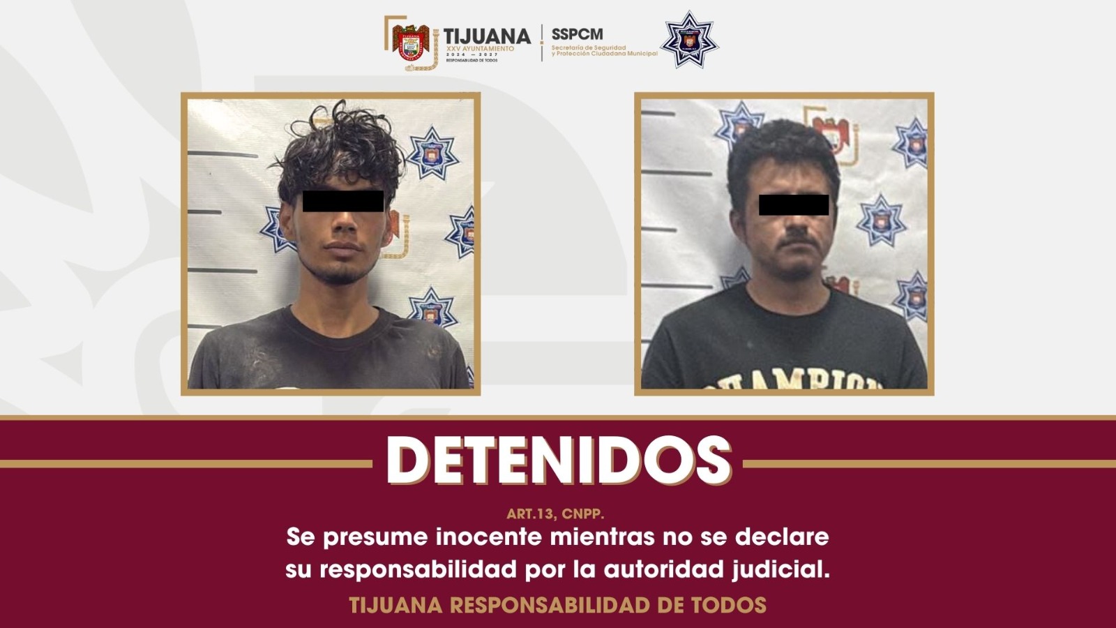 En atención a un reporte ciudadano, oficiales de la Policía Municipal de Tijuana detuvieron a dos personas presuntas responsables de privar de la libertad a un hombre, golpearlo y despojarlo de su vehículo.