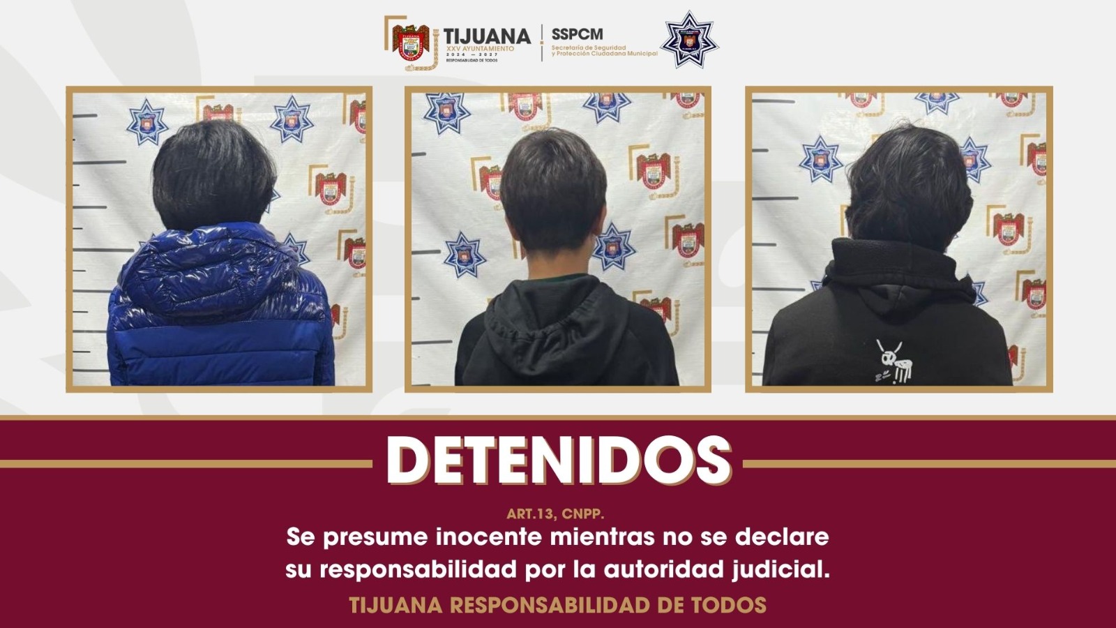 En la revisión se localizaron siete cigarrillos y una bola transparente con la droga conocida como marihuana, por lo que fueron asegurados los tres menores identificados como Carlos Eduardo “N”, Alan Hiram “N” y Joel Tadeo “N”, todos de 16 años, quienes fueron trasladados ante la autoridad correspondiente, haciéndoles de conocimiento sus derechos constitucionales como personas menores de edad.