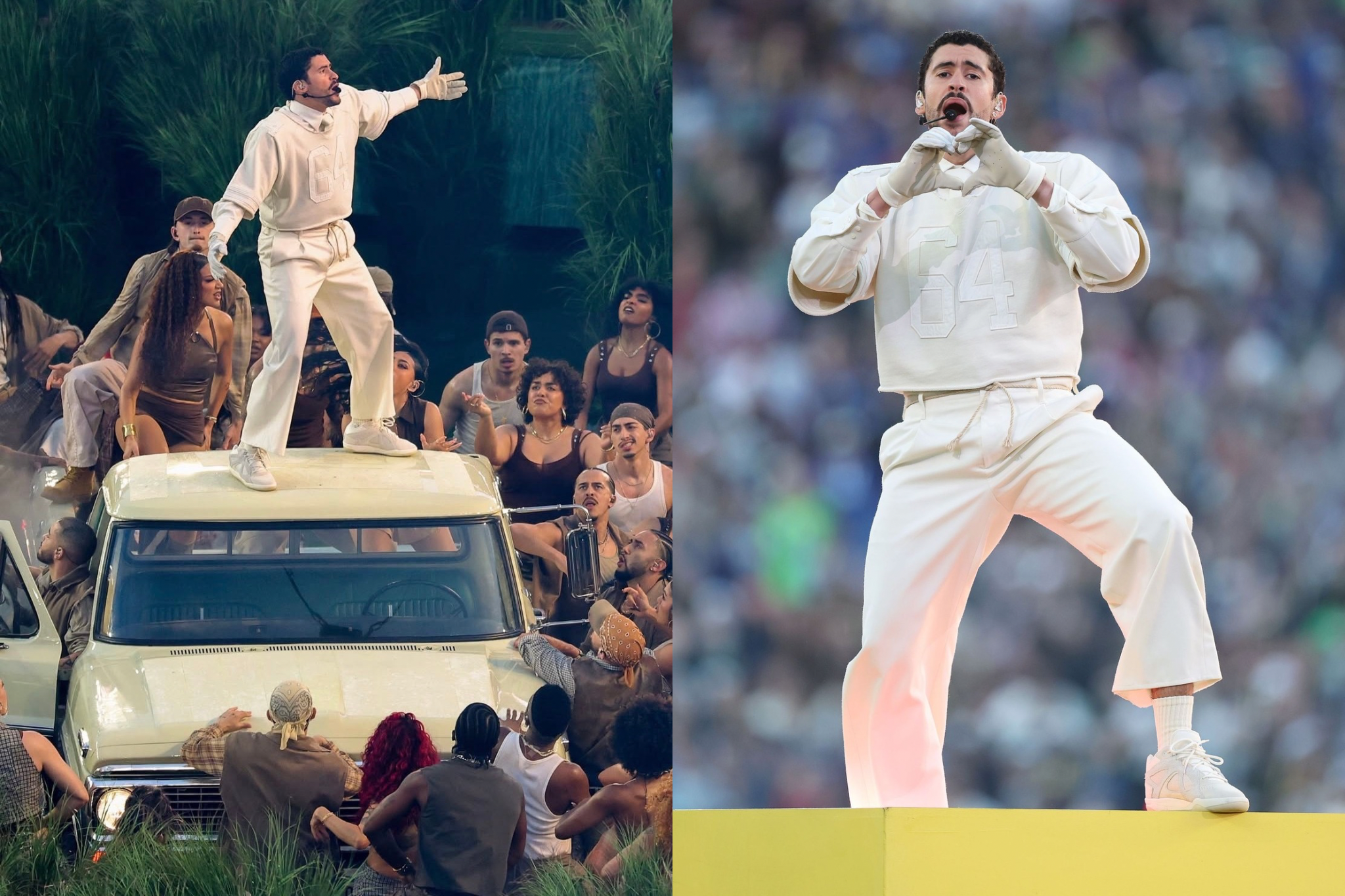La presentación destacó por la mezcla de reguetón, trap y sonidos latinos que han consolidado a Bad Bunny como una de las figuras más influyentes de la música global
