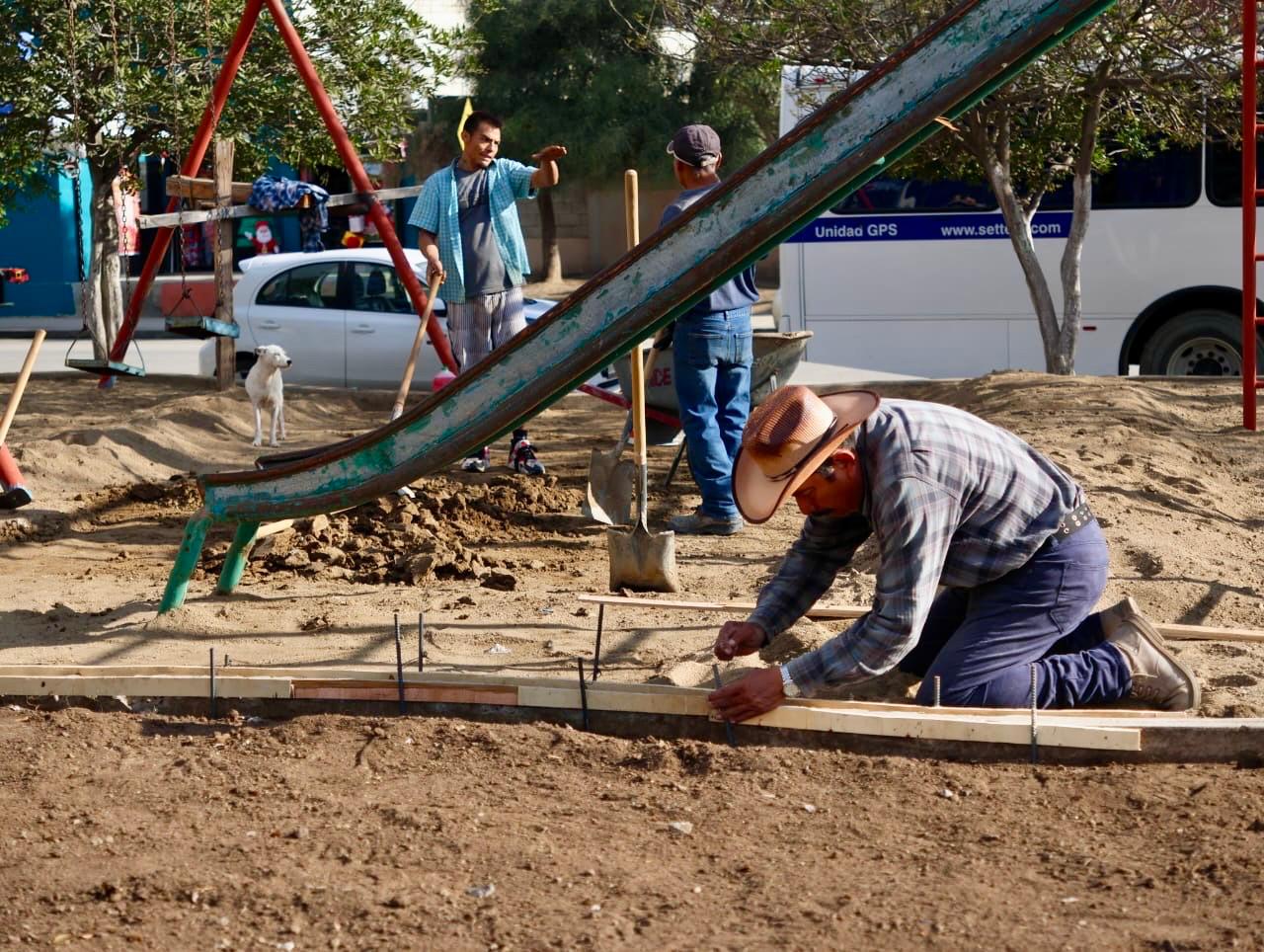 También se rehabilita el área de patinaje de 141 metros cuadrados y la zona de juegos infantiles de 140 metros cuadrados; reparación de luminarias; sembrado de pasto sobre una superficie de mil 133 metros cuadrados, y suministro e instalación de lámpara tipo bolardo.