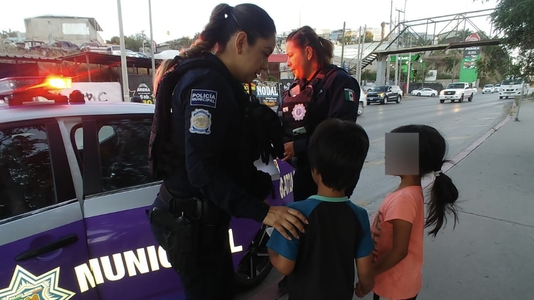 Dos menores de edad fueron rescatados por elementos del ‘Escuadrón Violeta’ de la Policía Municipal de Tijuana, tras ser localizados deambulando solos y en condiciones de abandono en la colonia Sánchez Taboada.
